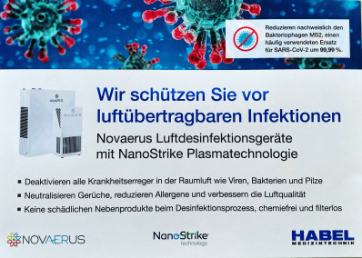 Das Wartezimmer unserer Ordination ist mit Novaerus Luftdesinfektiongeräten ausgestattet, die Sie vor luftübertragbaren Infektionen schützen!